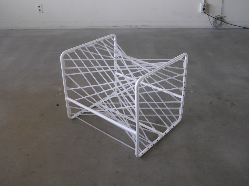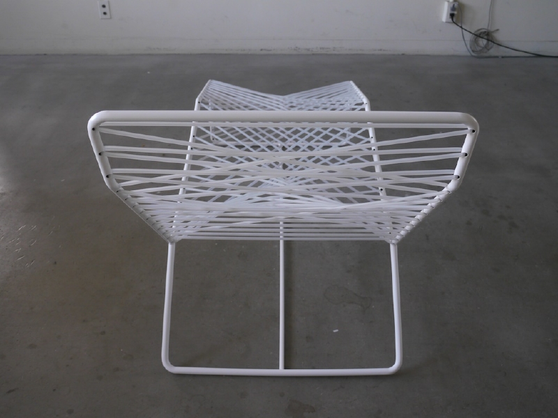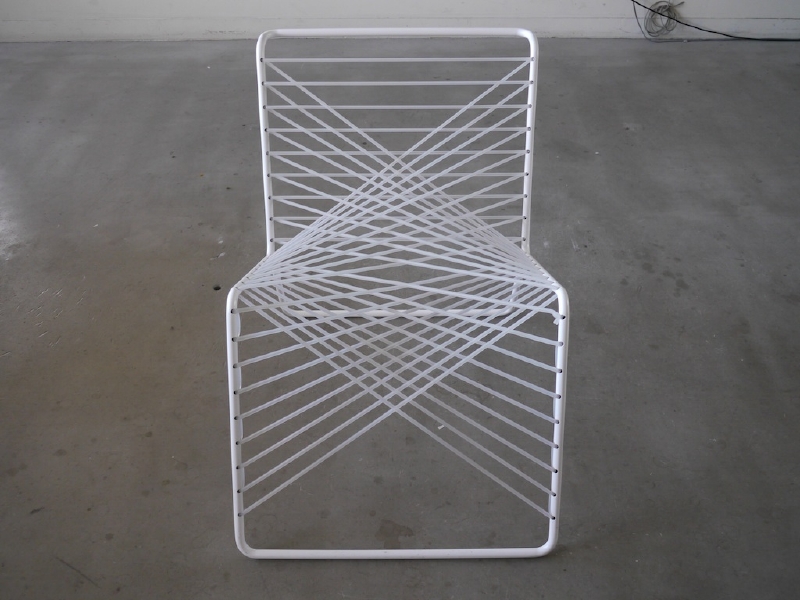 この椅子の発想プロセスは、通常とは異なる。 この椅子は、側面図を出発点として制作された。 まず二次元上で曲線を定義し、その定義された曲線が 守られるように三次元上で直線をレイアウトしていった。 するとそこに座面が生まれ、シリコンチューブという素材を用いる事で、美しさと心地よさを持った椅子となった。