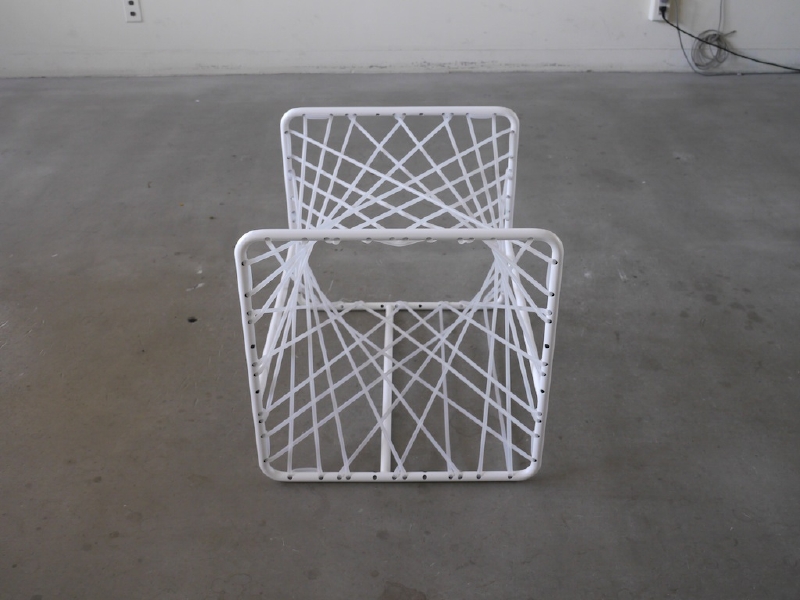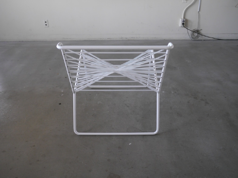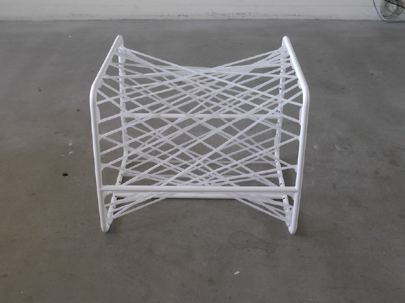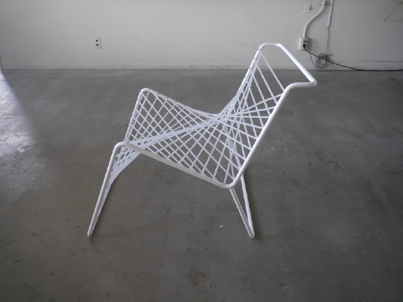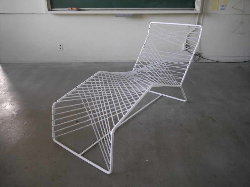 この椅子の発想プロセスは、通常とは異なる。 この椅子は、側面図を出発点として制作された。 まず二次元上で曲線を定義し、その定義された曲線が 守られるように三次元上で直線をレイアウトしていった。 するとそこに座面が生まれ、シリコンチューブという素材を用いる事で、美しさと心地よさを持った椅子となった。
